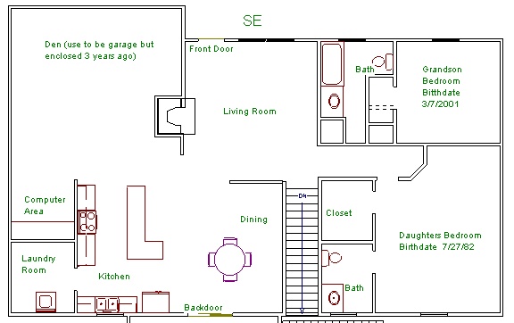Attached is a 3 drawings one of the upstairs, one of downstairs also showing my pond out back and the third is one I sent in before showing the general slope of the lot and how the house sits. Thanks you so much for taking a look at this. I know there is something wrong. I have tried several times to sell this house and can't seem to find a buyer. When I rent it they only last a few months before they move and I am forced to move back into the house.