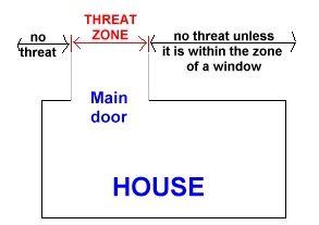 Else if one can still see the power pole but it does not seem to slice thru the main door (directly) then there is no threat. I.e. the power pole must be seemed to be slicing thru the main door or window. If the power pole is diagonal then there is no threat at all.