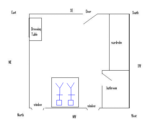 An alternative file: nw-bedplacement-2.gif shows the next best alternative (less the placement of the dressing table - as it is a poison arrow aimed partially at the bed. The dressing table should be placed further away or tilted away (if it does not have a dressing mirror on it).