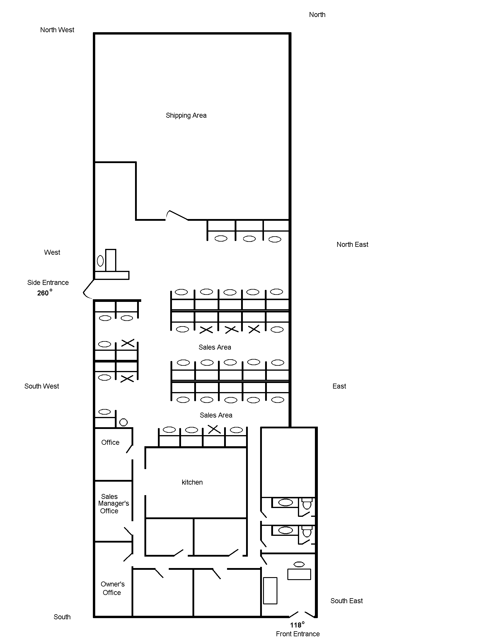 Thank you for your generous offer to help me again. I don't know if I would need it though. Because if the shipping area is included in the analysis, then the compass reading of the main door from the center of the building is almost exactly the same as the reading of my home. The two structures are both built in the same era, so I assume that the flying chart will be the same. But if the shipping area is not considered part of the building, then I would need another chart.